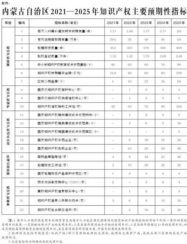 附件:内蒙古自治区2021—2025年知识产权主要预期性指标